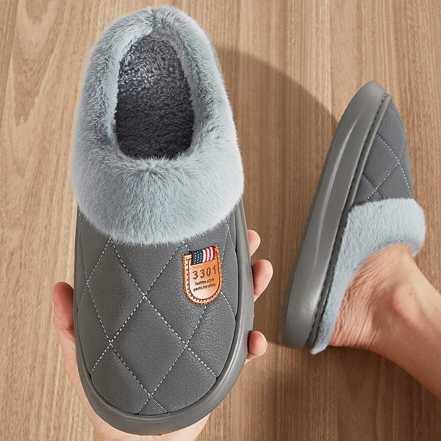 Men's Winter Slippers Memory Foam Plush Warm Cozy Luxury House Shoes fabric Casual Slipper Big Size Platform