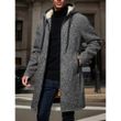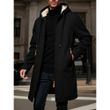 Men's Winter Warm Long Coat Zipper Jacket Zip Windbreaker Thick Fleece Windproof Overcoat Casual Contrast Color Hooded Jacket