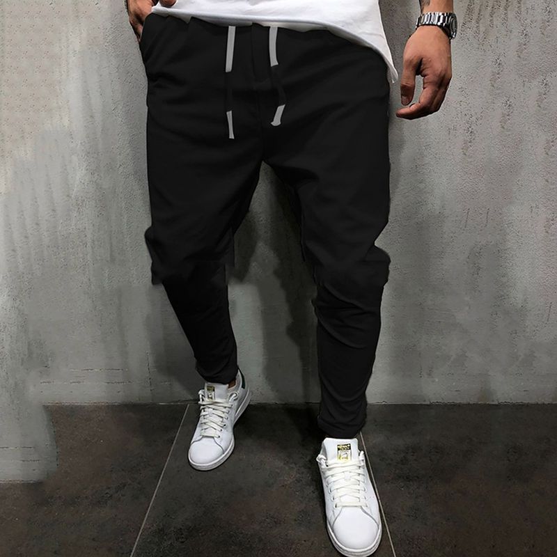 Men's Woven Fabric Casual Jogging Trousers Black XL