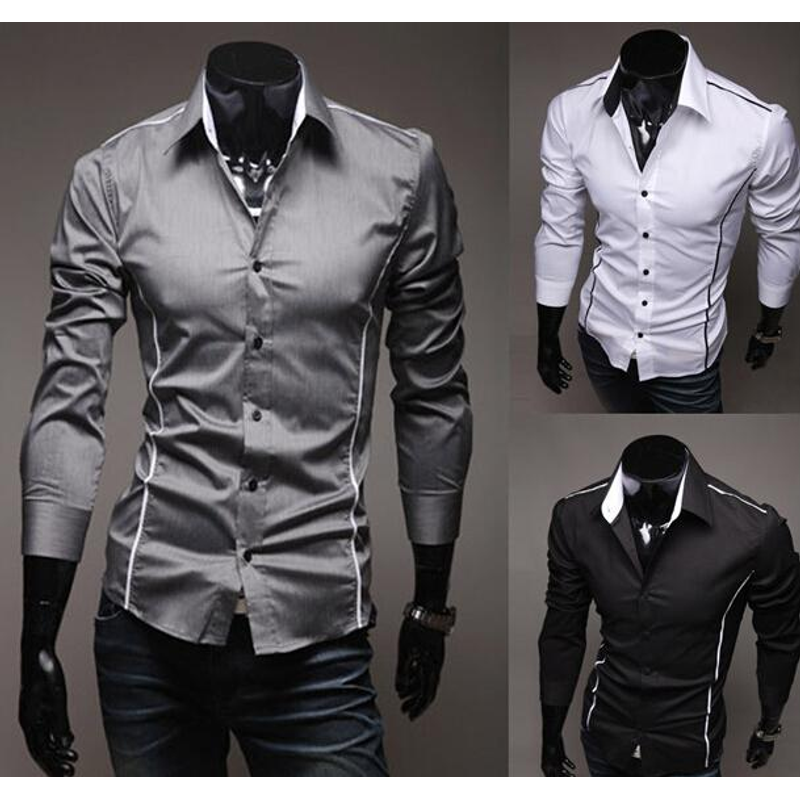 Men Shirt Fashion Cotton Slim Men Shirt Long Sleeve High Quality Casual Black/White/Gray Men Shirt For Men size: M-XXXL
