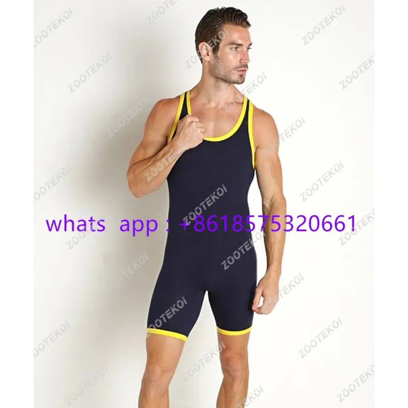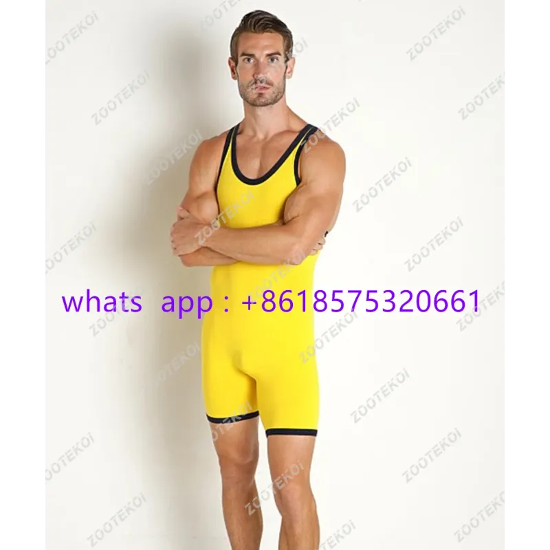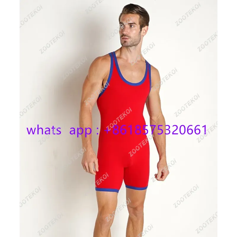 Men Sleeveless Wrestling Vest Tights Race Running Suit Gym Training Strength Weightlifting Clothing Athletic Elasticity Jumpsuit