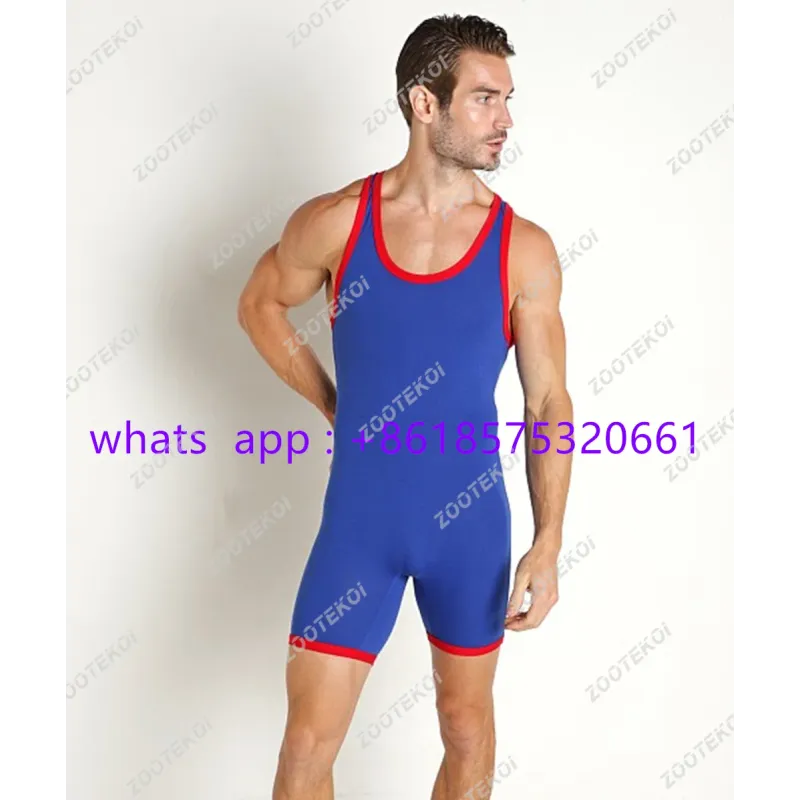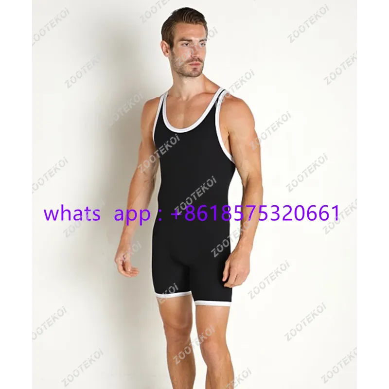 Men Sleeveless Wrestling Vest Tights Race Running Suit Gym Training Strength Weightlifting Clothing Athletic Elasticity Jumpsuit