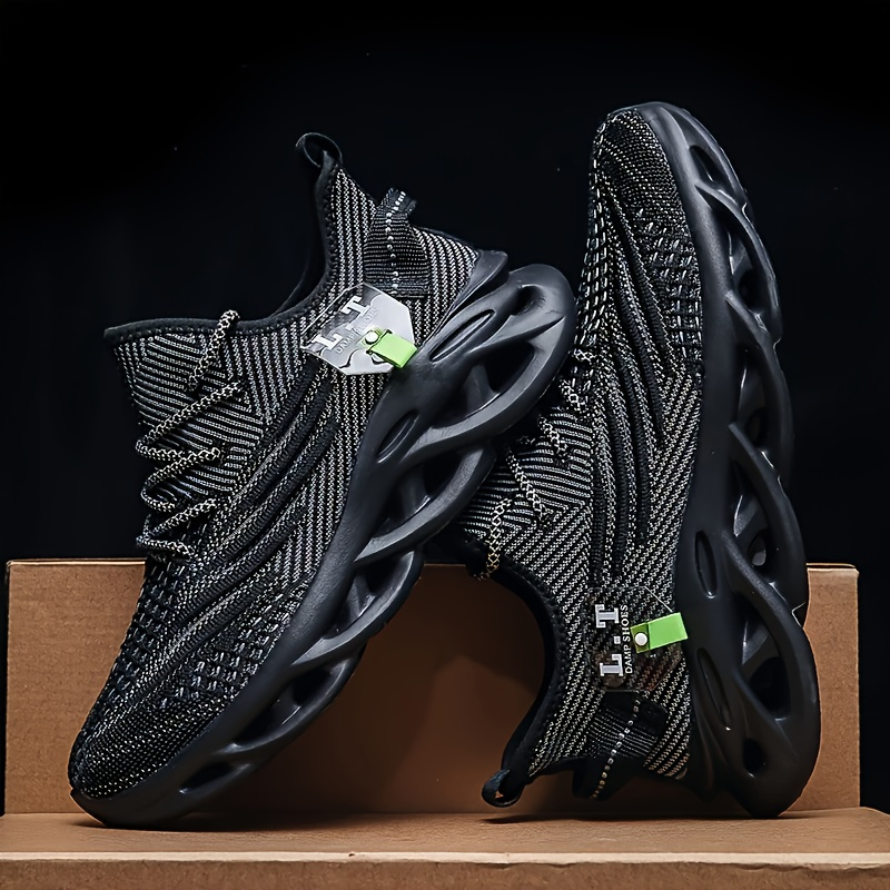 Men Sports Running Black Jogging Shoes Casual Sneakers Outdoor Breathable Mesh Women Light Shock-absorption Black Tennis