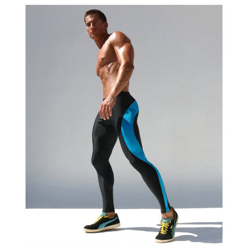 Men Sports Tight Stretch Fitness Pants Black yellow S