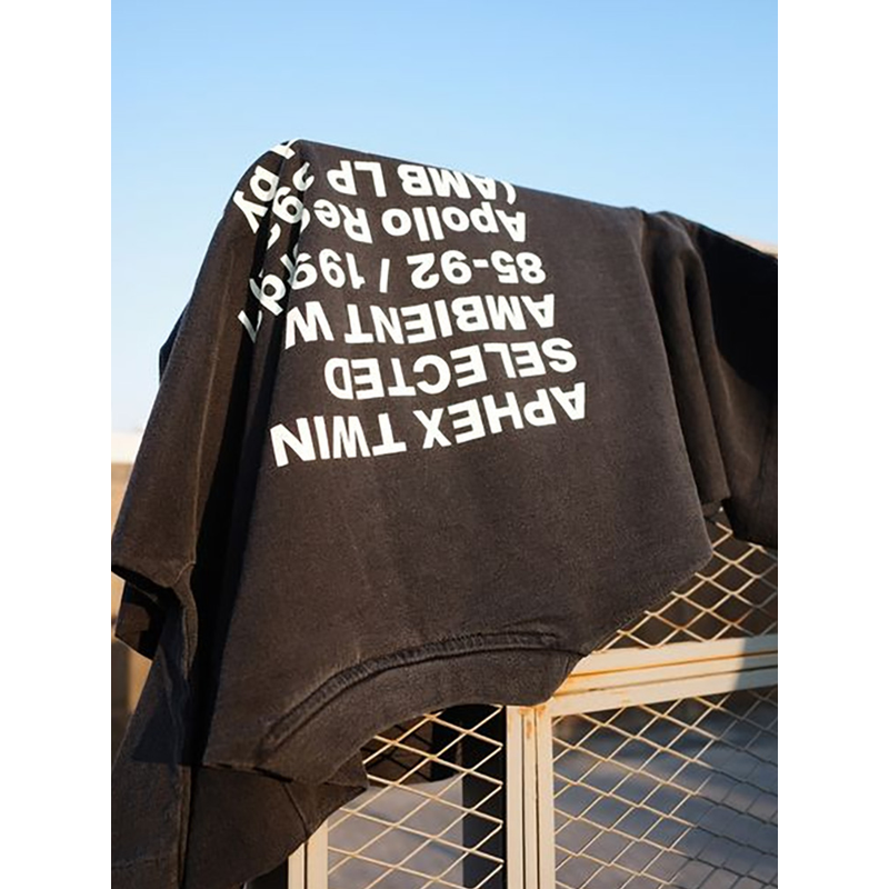 Men T-Shirt Aphex Twin Washed Black Print Cotton Graphic Oversized Korean Fashion Short Sleeve Tops Tees Y2k Streetwear Clothing