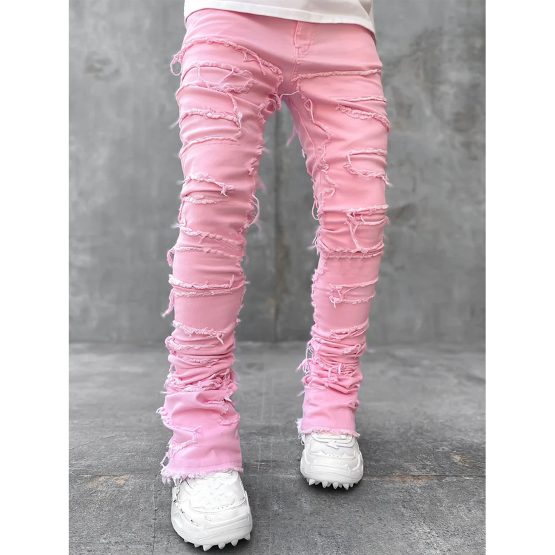 Men Trousers Individual Patched Pants Long Tight Fit Stacked Jeans For Mens Clothing