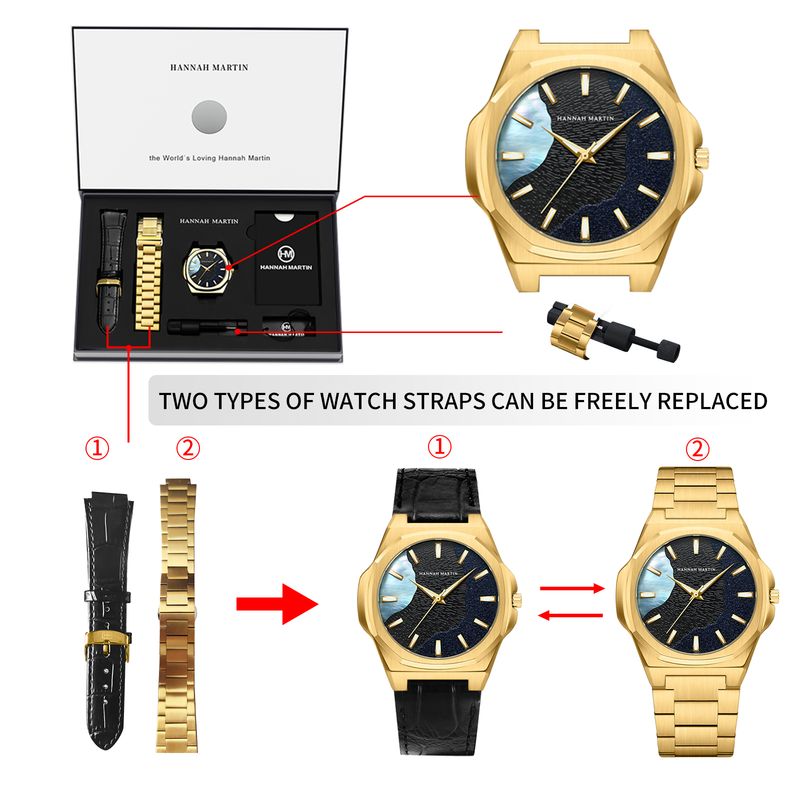 Strap Material: Original leather strap & Stainless steel watch band