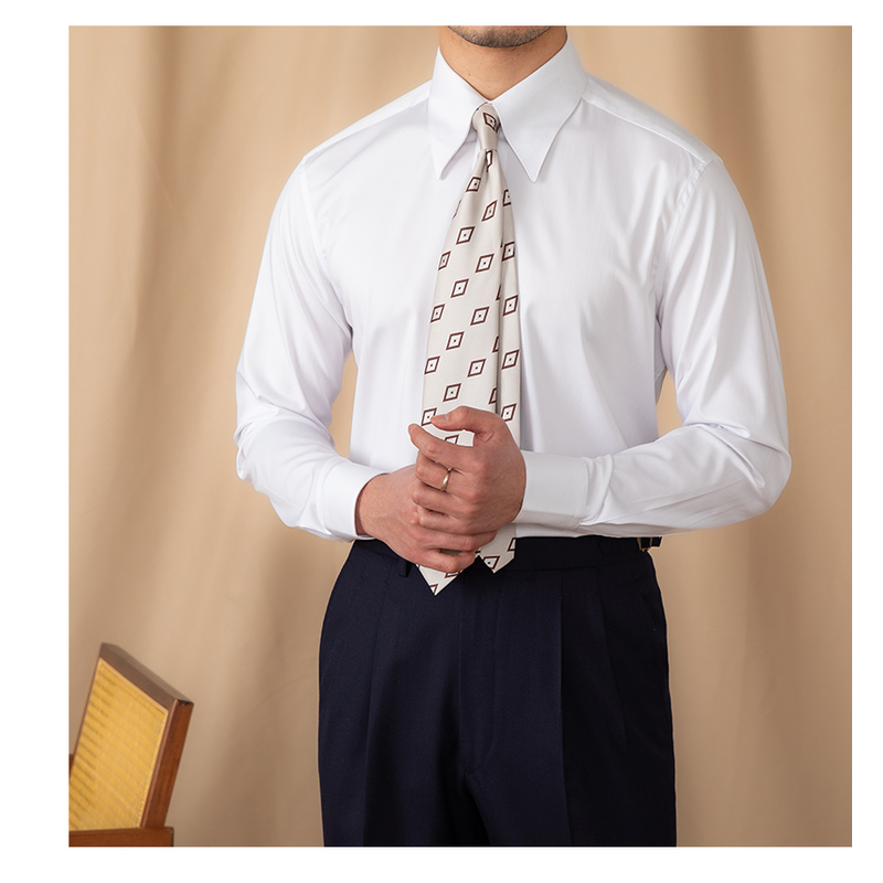Men White Long Sleeve Shirt Slim Fit Business White 2XL