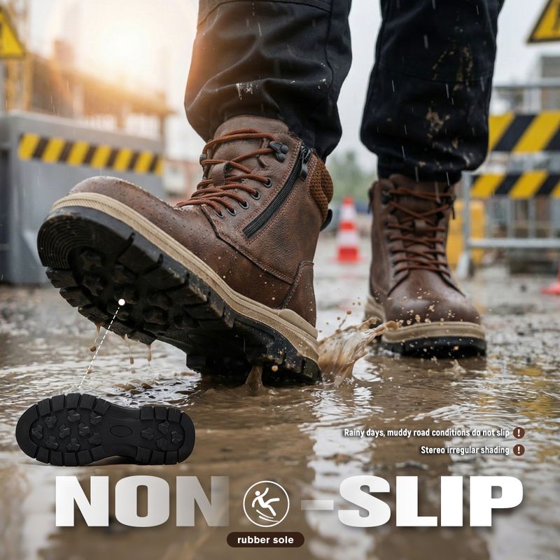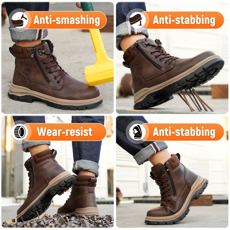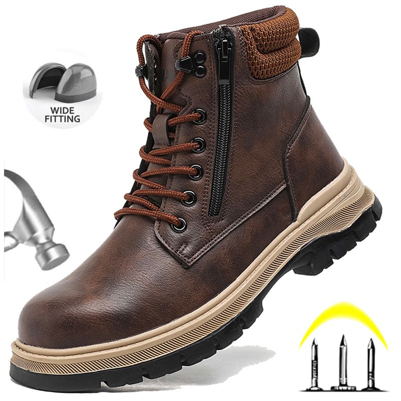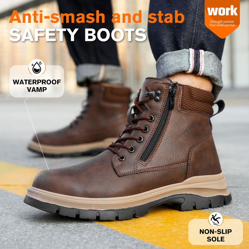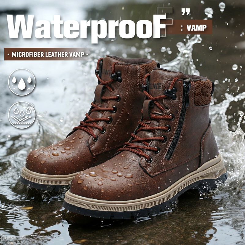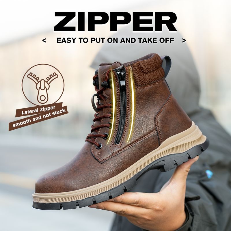 Men Work Boots Puncture-Proof Waterproof Work Shoes Steel Toe Safety Boots Industrial Indestructible Boots Side Zipper Shoes