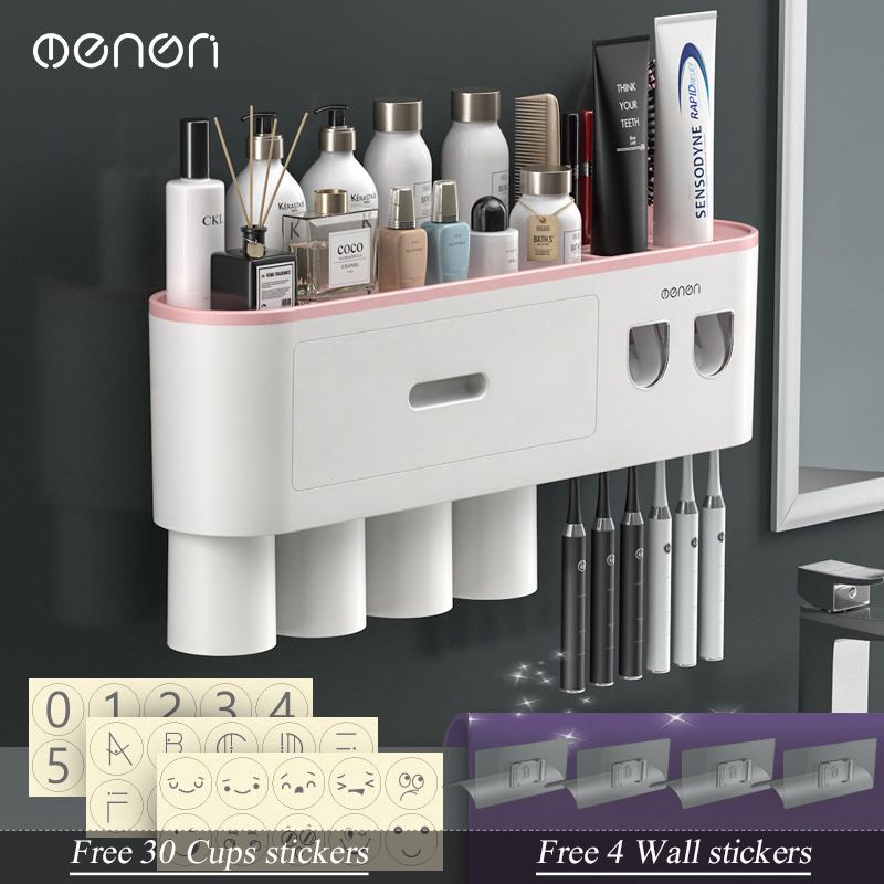 MENGNI-Magnetic Adsorption Inverted Toothbrush Holder Wall -Automatic Toothpaste Squeezer Storage Rack Bathroom Accessories