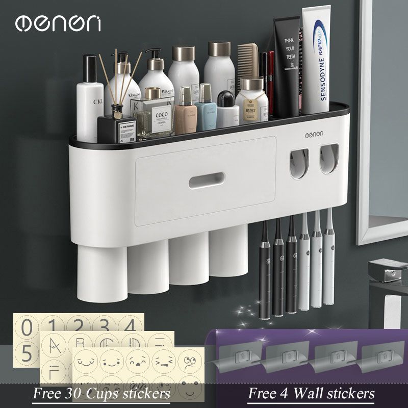 MENGNI-Magnetic Adsorption Inverted Toothbrush Holder Wall -Automatic Toothpaste Squeezer Storage Rack Bathroom Accessories