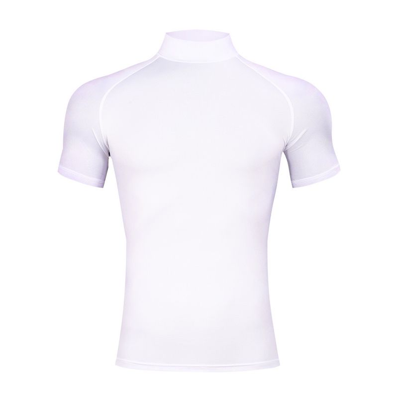 Mens Bodybuilding Sports Tight T-shirt Summer Compression Turtleneck Short Sleeve Gym Fitness Running Quick Dry Male Workout Top