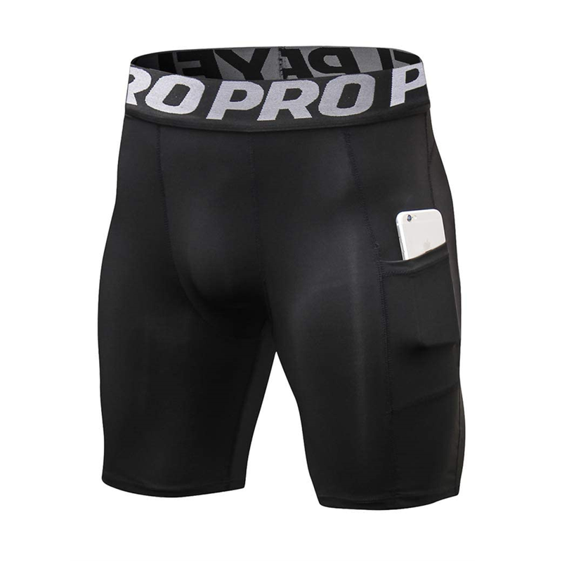 Mens Gym Shorts with Pockets Workout Compression Leggings for Men Polyester Boxer Briefs Running Basketball Athletic Tights