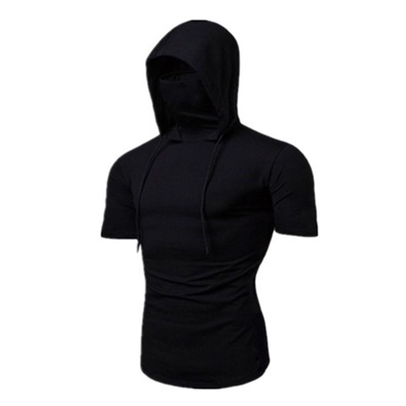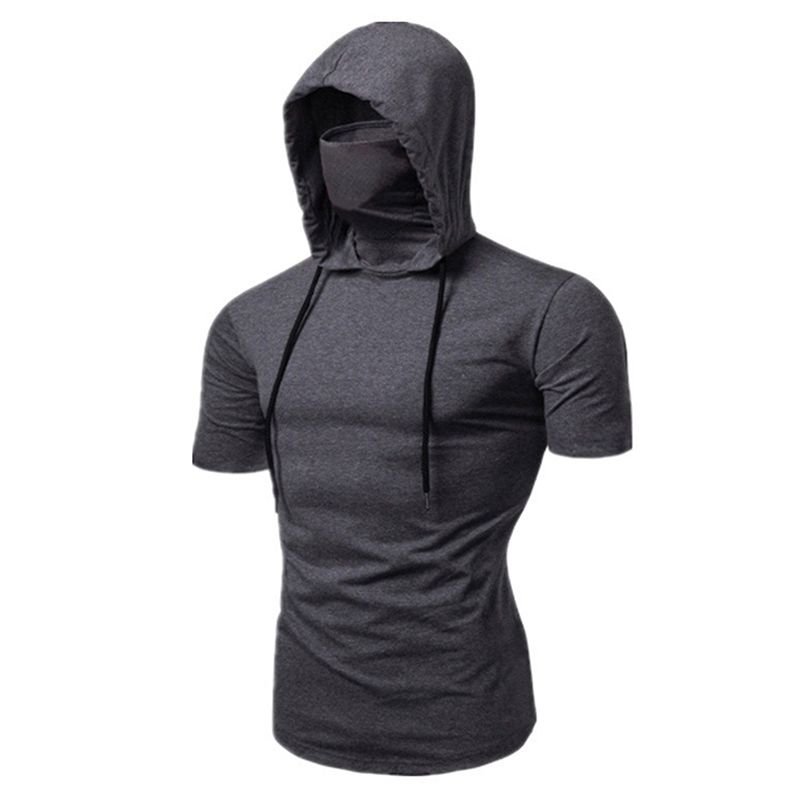 Mens Gym Thin Hoodie Short Sleeve Hoodies With Mask Sweatshirt Casual Splice Large Mask Hoodie Sweatshirt Hooded Tops Cycling