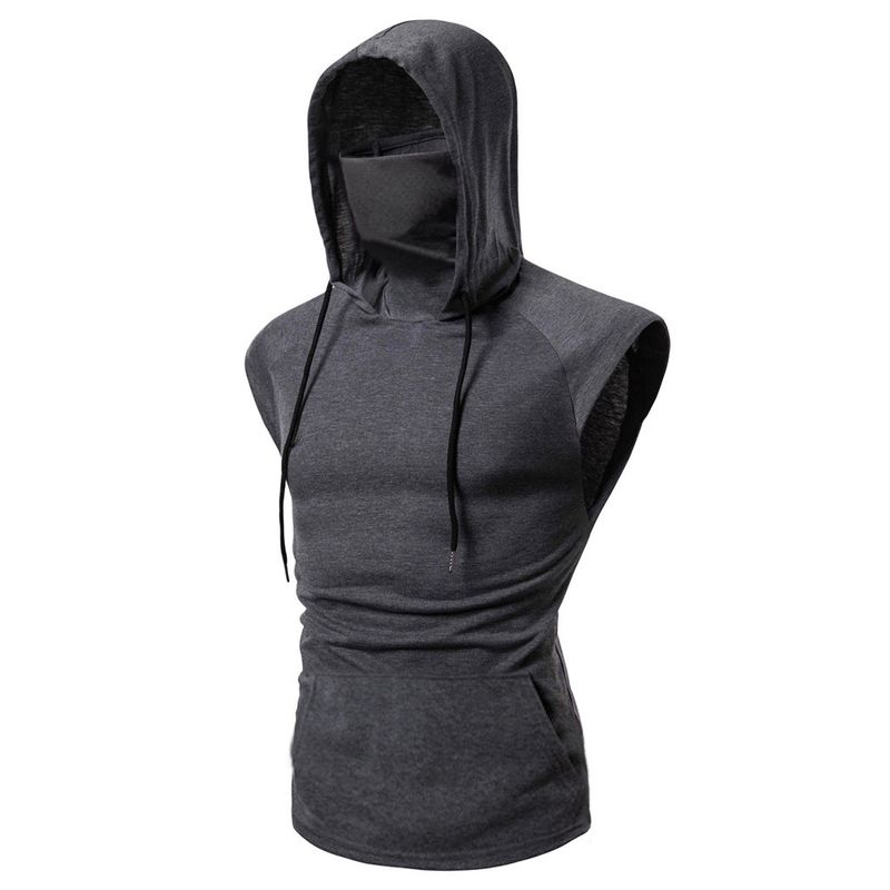 Mens Mask Button Sports Vest Hooded Blue L