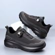 Mens Slip Resistant Running Shoes Black Thick Sole with Rotating Button Casual Sneakers for Outdoor Sports Commuting