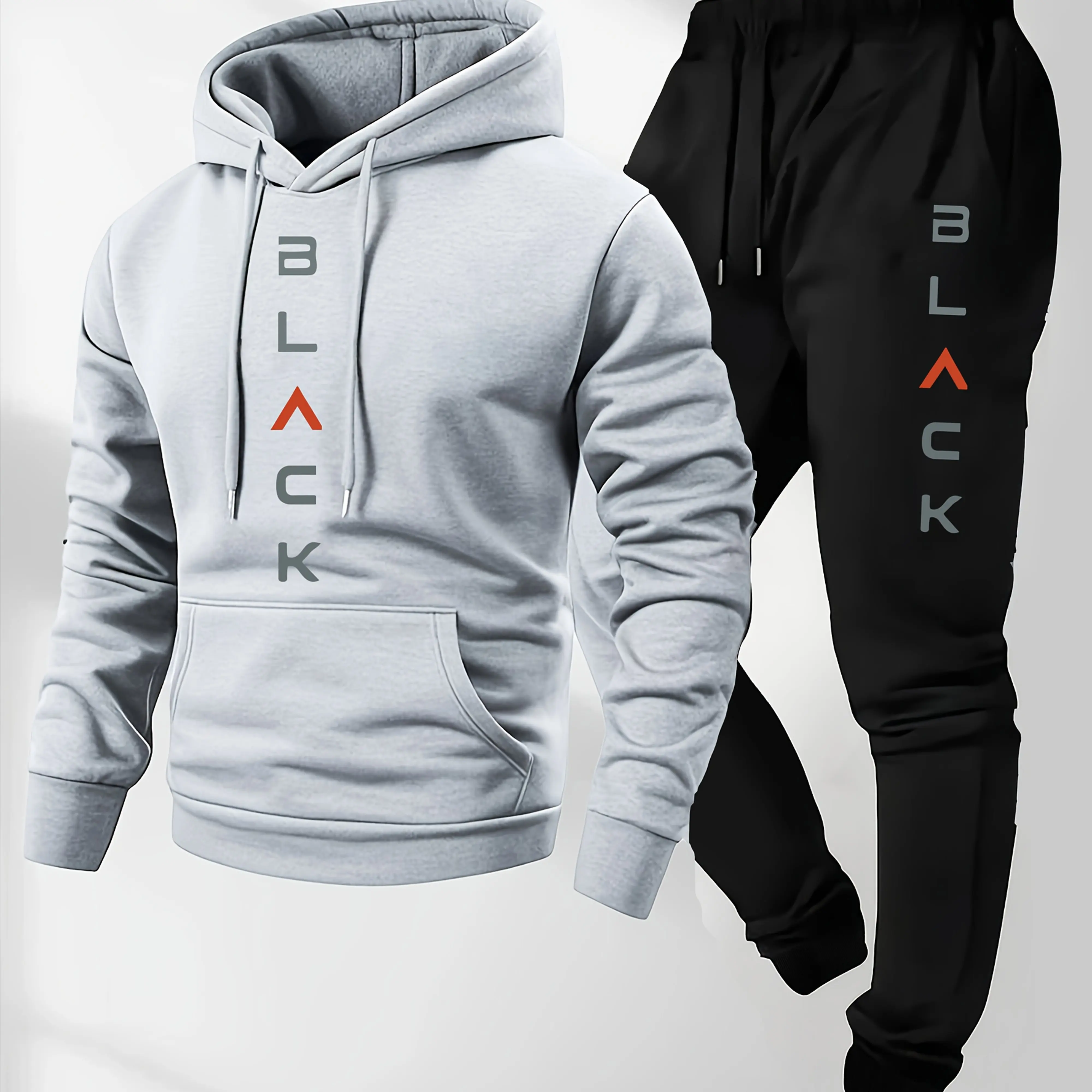 Mens soft comfortable Boston print hooded sweatshirt sweatpants set eco-friendly thin velvet warm autumn winter hoodies
