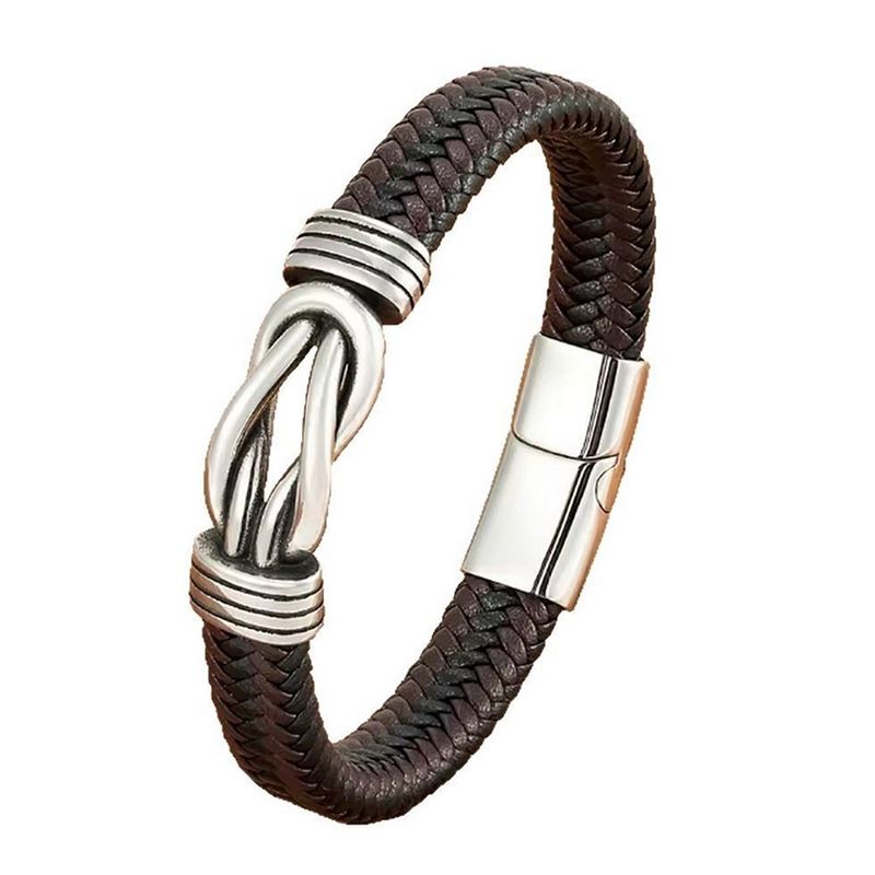 Mens Stainless Steel Bracelet with Leather, Classic Business Jewelry with Chain Design, Gift for Men
