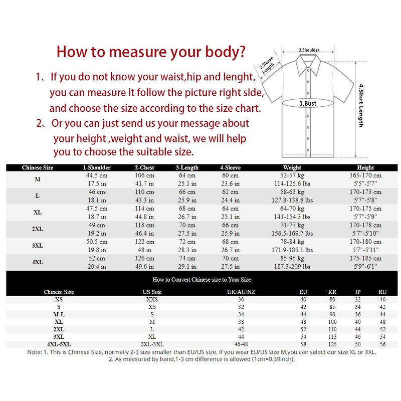 Note: 1. This is Chinese Size, normally 2-3 size smaller than EU/US size. If you wear EU/US size M,you can select our size XL or XXL.