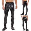 Mens Zip Leather Trousers Casual Straight Shaped Pants Comfortable Shiny Male High Elastic Shaping Leggings