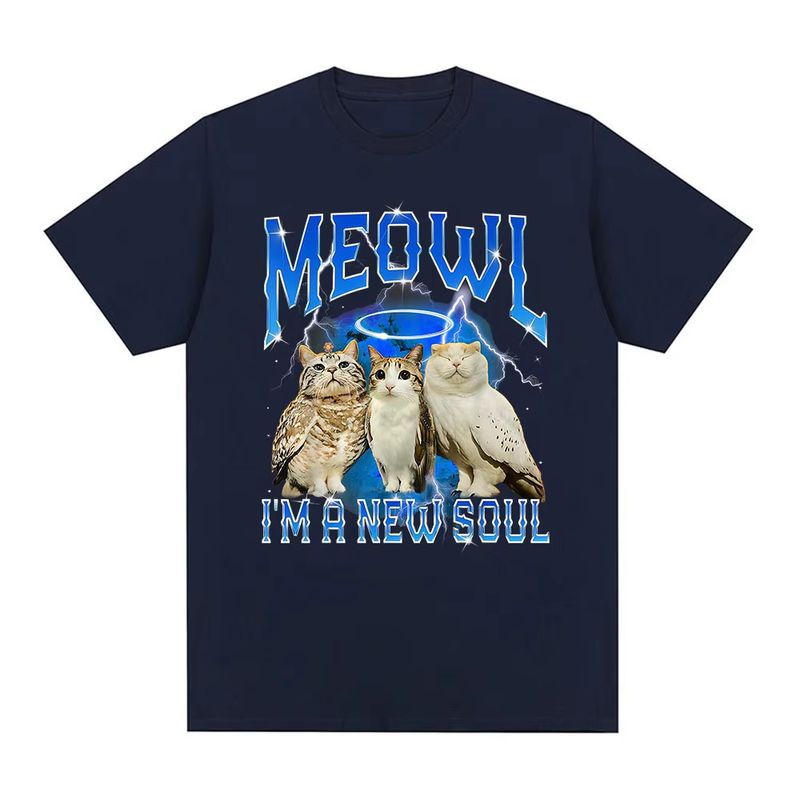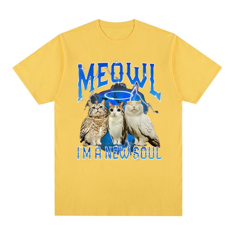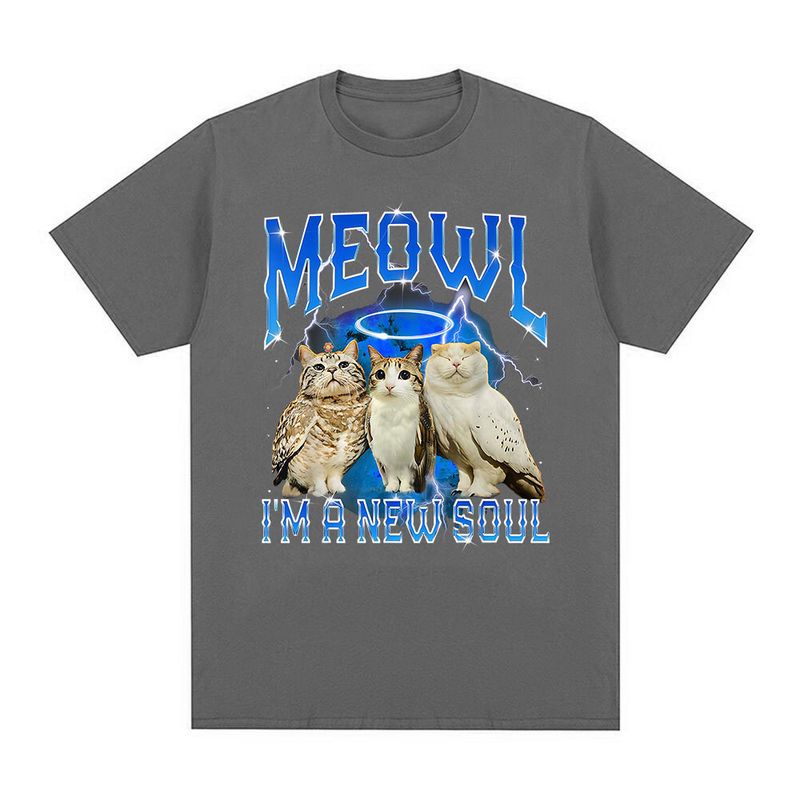 Meowl Cat Owl Funny Meme I'm A New Soul T-shirts Men's Clothing Fashion Harajuku Short Sleeves Tees Cotton Summer T Shirts Tops