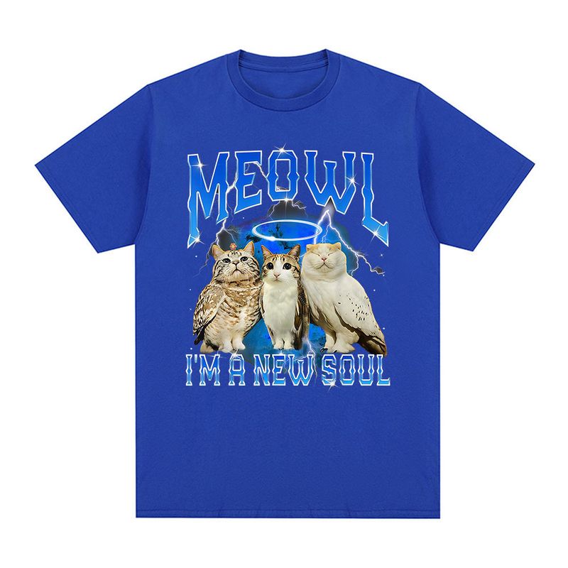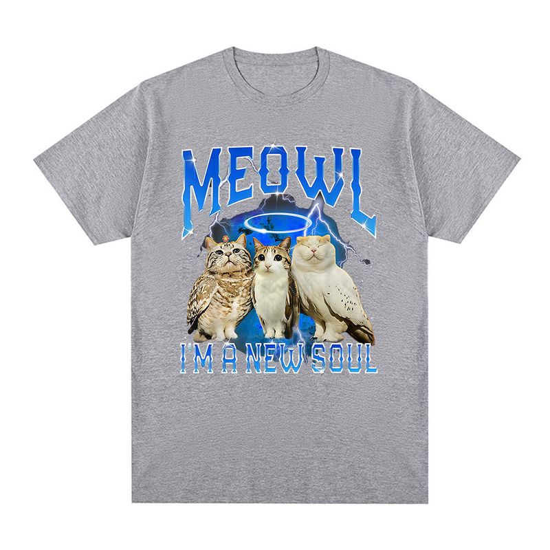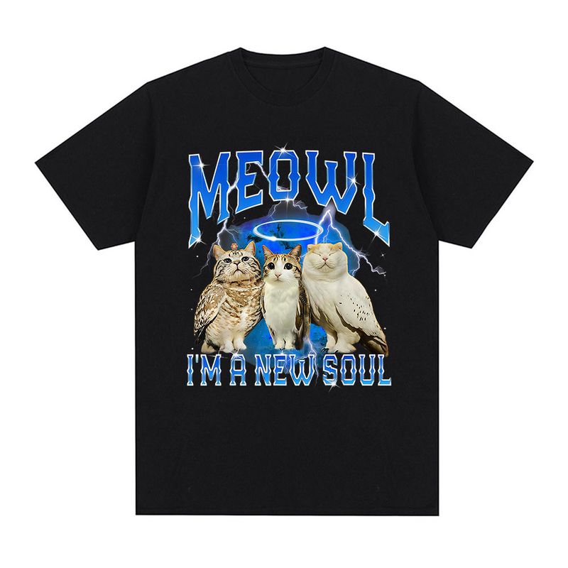 Meowl Cat Owl Funny Meme I'm A New Soul T-shirts Men's Clothing Fashion Harajuku Short Sleeves Tees Cotton Summer T Shirts Tops