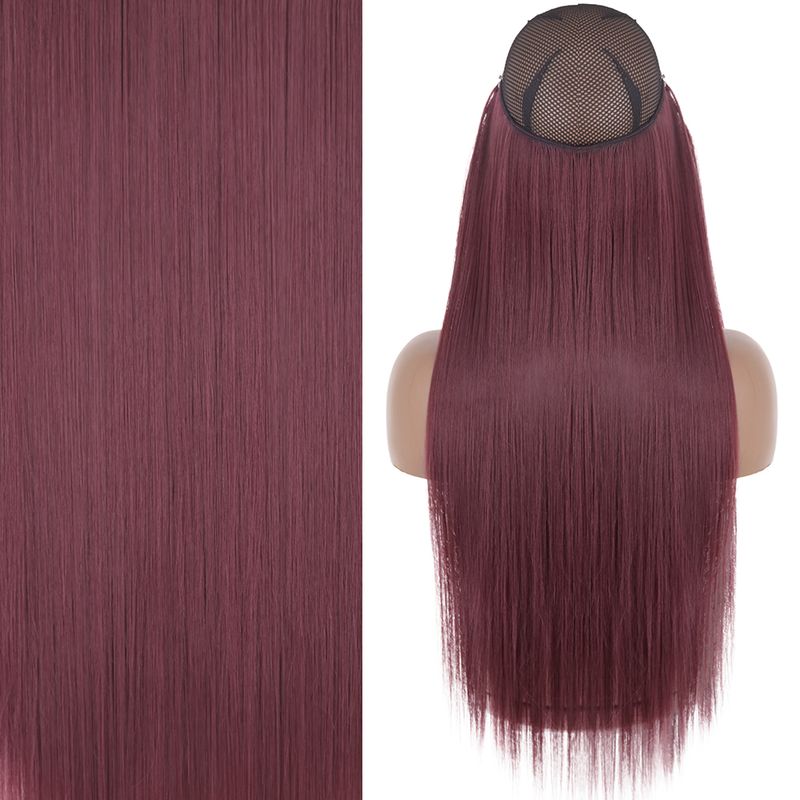MERISIHAIR Synthetic No Clip Invisible Wire Hair Extensions Straight Black Blonde One Piece False Hairpiece Hair Extension