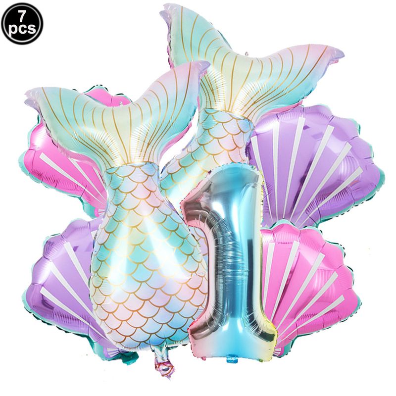 Mermaid Birthday Decorations 7 Pcs Mermaid Foil Balloon Mermaid Tail Balloon Mermaid Decor for 1st-9th Birthday Party Baby Shower