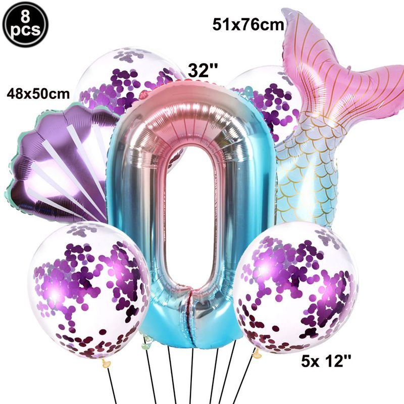 Mermaid Birthday Decorations 7 Pcs Mermaid Foil Balloon Mermaid Tail Balloon Mermaid Decor for 1st-9th Birthday Party Baby Shower