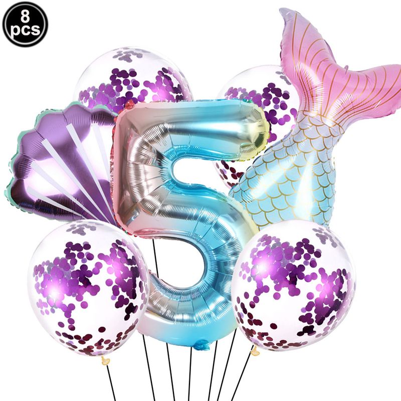 Mermaid Birthday Decorations 7 Pcs Mermaid Foil Balloon Mermaid Tail Balloon Mermaid Decor for 1st-9th Birthday Party Baby Shower