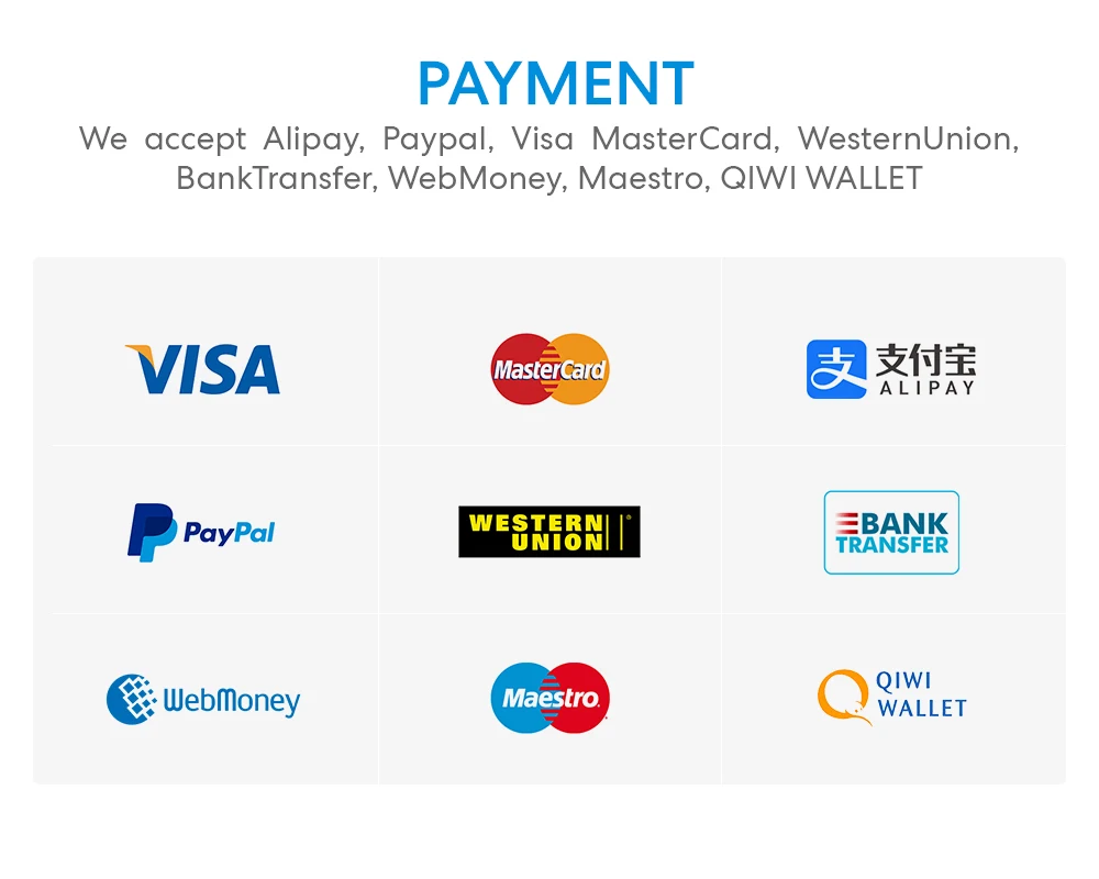 We accept the following payment options: