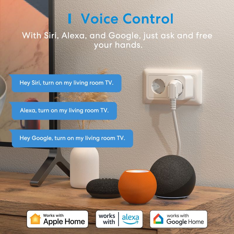 8-Smart Functions: 1. Voice control, just saying "Alexa" / "Hi Siri" / "Hey Google" to control the plug. 2. Remote app control, using the free app(Refoss) to control wifi plug anytime, anywhere. 3. Offline control. 4. Timer and schedule. 5. Scene setting. 6. Memory mode. 7. Local control. 8. Sunrise/sunset.