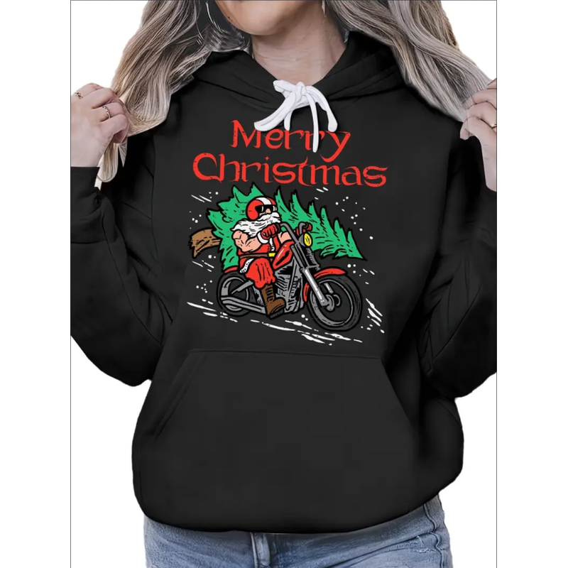 Merry Christmas Biker Santa Xmas Motorcycle Big Bike Dad Men Woman'S Cozy Hoodie Graphic Print Pullover Hoodie -Casual Long Sleeve Fall And Winter Essential