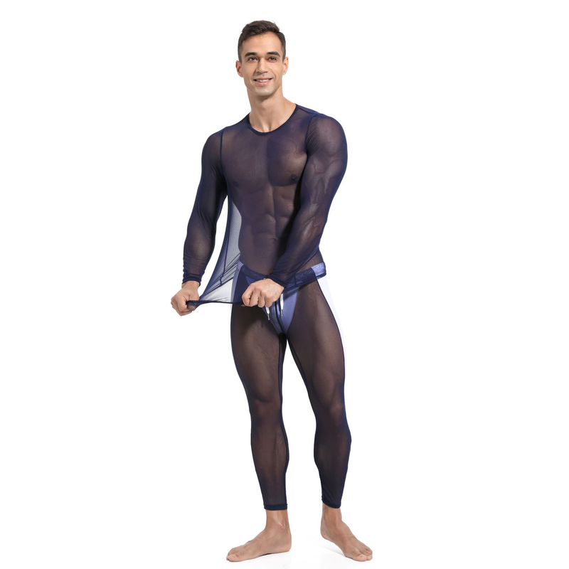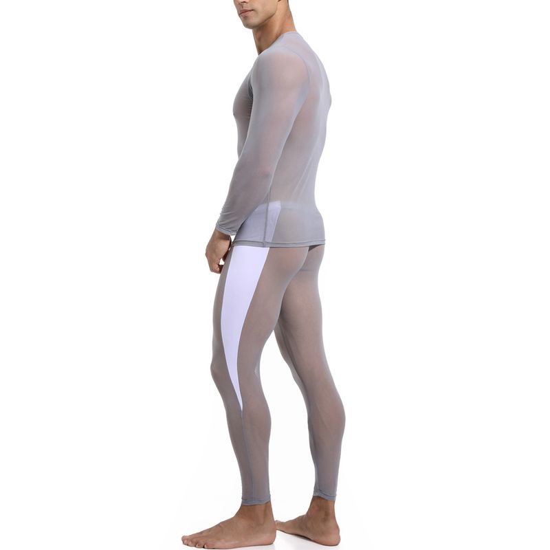 Mesh Breathable Men's Sports Suit Long-sleeved Trousers Grey M