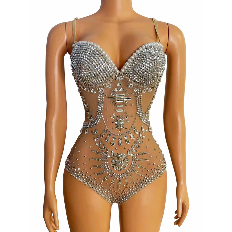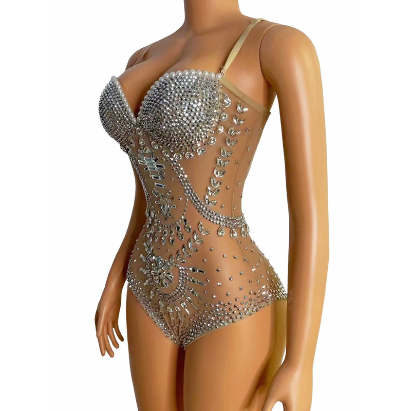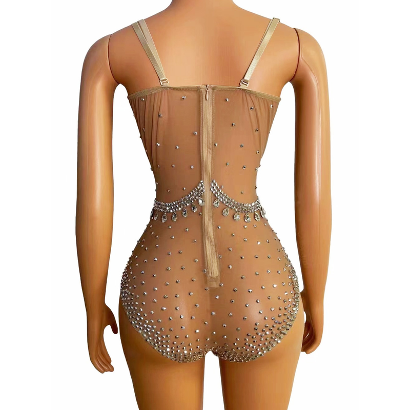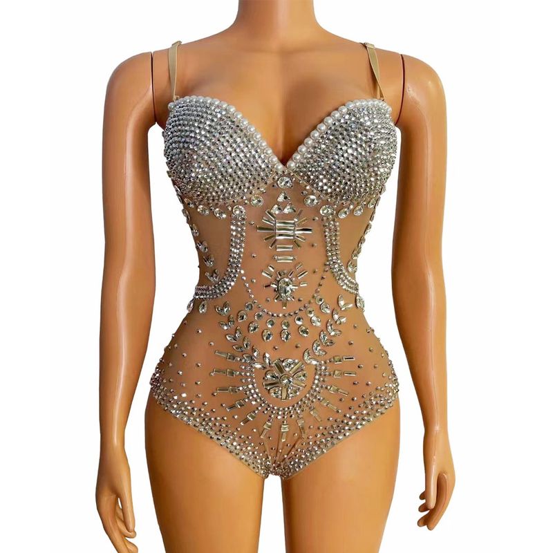 Mesh Luxury Full Diamond Sleeveless Jumpsuit Triangle High Fork S Solanum Nigrum