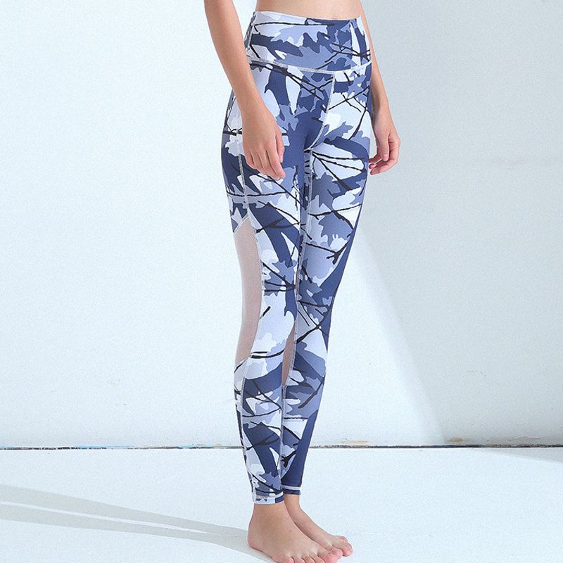 Mesh Stitching Printed Sports Trousers For Fitness Shallow navy L