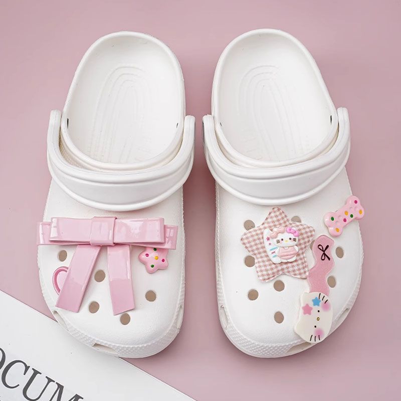 Mesuca Cute Hello Kitty Collection Shoe Charms Removable Cute Katie Shoe Accessories for Girls Summer Shoes DIY Holiday Gifts