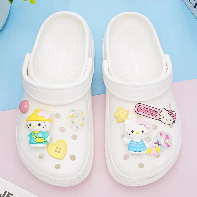 Mesuca Cute Hello Kitty Collection Shoe Charms Removable Cute Katie Shoe Accessories for Girls Summer Shoes DIY Holiday Gifts