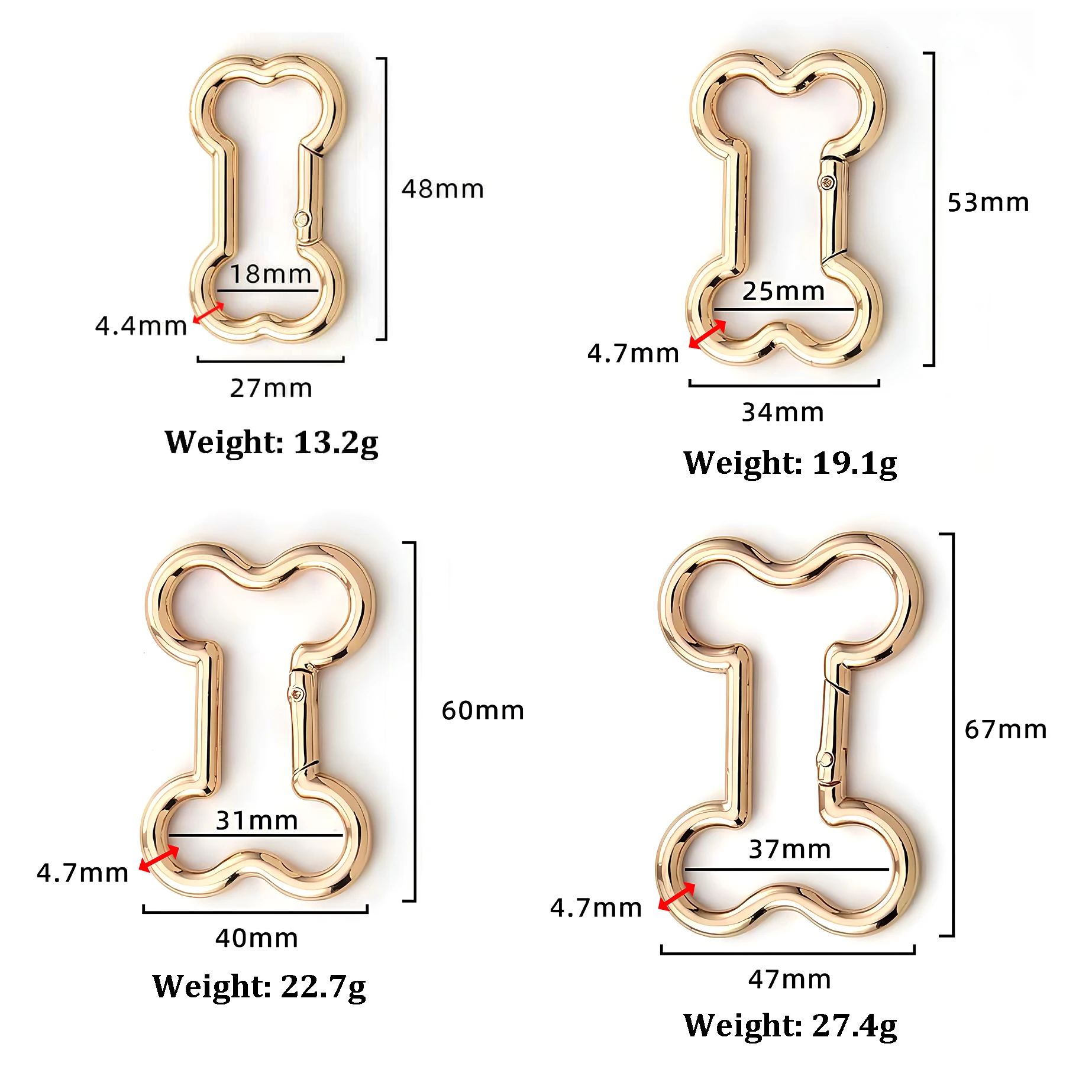 Metal Bone Shape Snap Hook Spring Gate Trigger Clasps for Leather Craft Belt Strap Webbing Keychain Carabiner Dog Chain Buckle