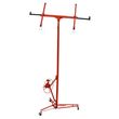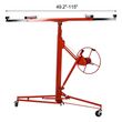 One Person Operation Load Capacity: 150 Lbs Sturdy welded steel construction with powder coating Foot stops to keep the lift in place for safety Disassemble no tools required Sturdy welded steel Hoist tilting for ceilings and walls Built-in winch with brake CE Standard Easy to assemble Could lower to 54" off the floor for easy panel loading Perfect For Both Home & Commercial Use Specification: Color: Red Foldable: Yesโ Brakes: Yes โ Material: All welded Steel Power source : hand chain Max Height: 16' Plate size : 4'x8' Adjustable height: 4'to 16' Apply various Drywall panels up to 4ft*16ft 4" caster wheels for easy rolling Load capacity: 150lbs The Drywall lift has following components which must be assembled before use: 1.Tripod base assembly 2.Frame assembly, which includes a winch assembly and standard telescoping lift sections 3.Cradle assembly, without its detachable cross arms 4.Two cradle cross arm assemblies 5.User's Manual Included Maximum Support 150 Pounds Our drywall lift supports the maximum load of 150 lbs. During the operation, we should pay attention to the weight of the lifted object, and remember not to exceed the maximum load to avoid accidents. Built-In Winch With Brake Lifter is easy to assemble and disassemble. The lock device and built-in winch brake are included for increased safety and sturdiness. Adjustable Telescopic Arm Telescopic arm can be adjusted from 49' to 114', ideal for installing 4' x 16' sheets.
