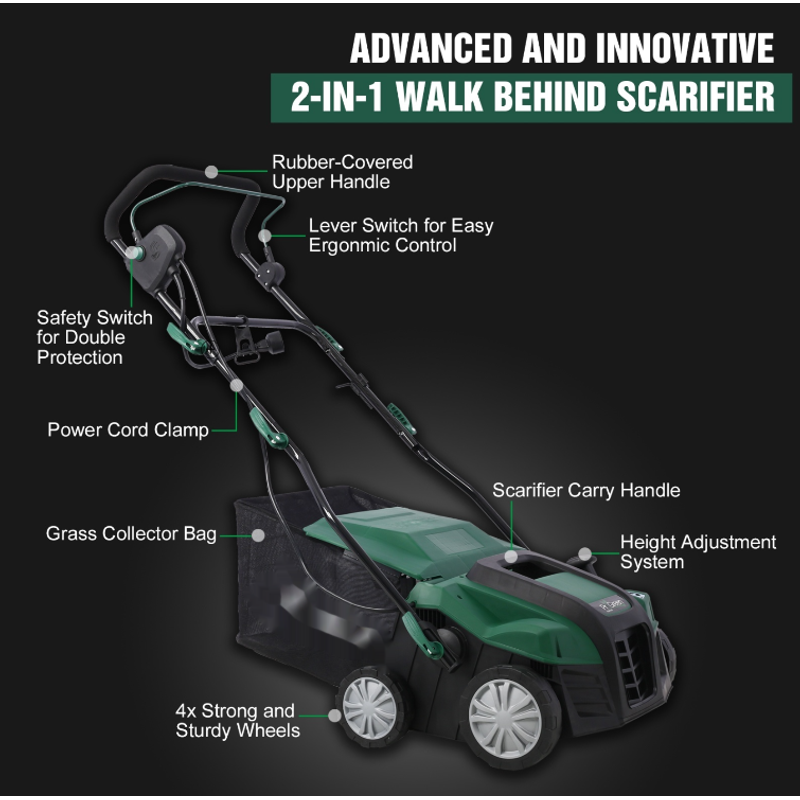Product Name:Garden Scarifier, 2-in-1 16INCH Dethatcher Scarifier,15 Amp Electric Lawn Dethatcher,Removable Collection Bag extra large 58QT