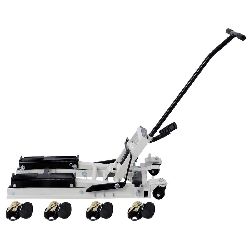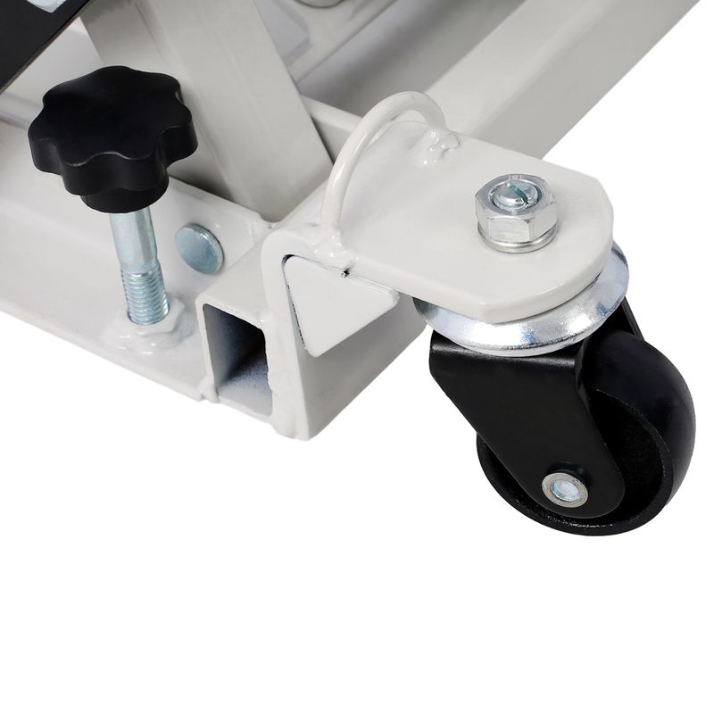 Convenient Mobility: Equipped with 2 universal casters and 2 directional casters, our motorcycle lift is effortlessly maneuverable underneath your motorcycle or to any desired location. It can even be utilized for short-distance transportation of heavy vehicles, adding versatility to its already impressive functionality.