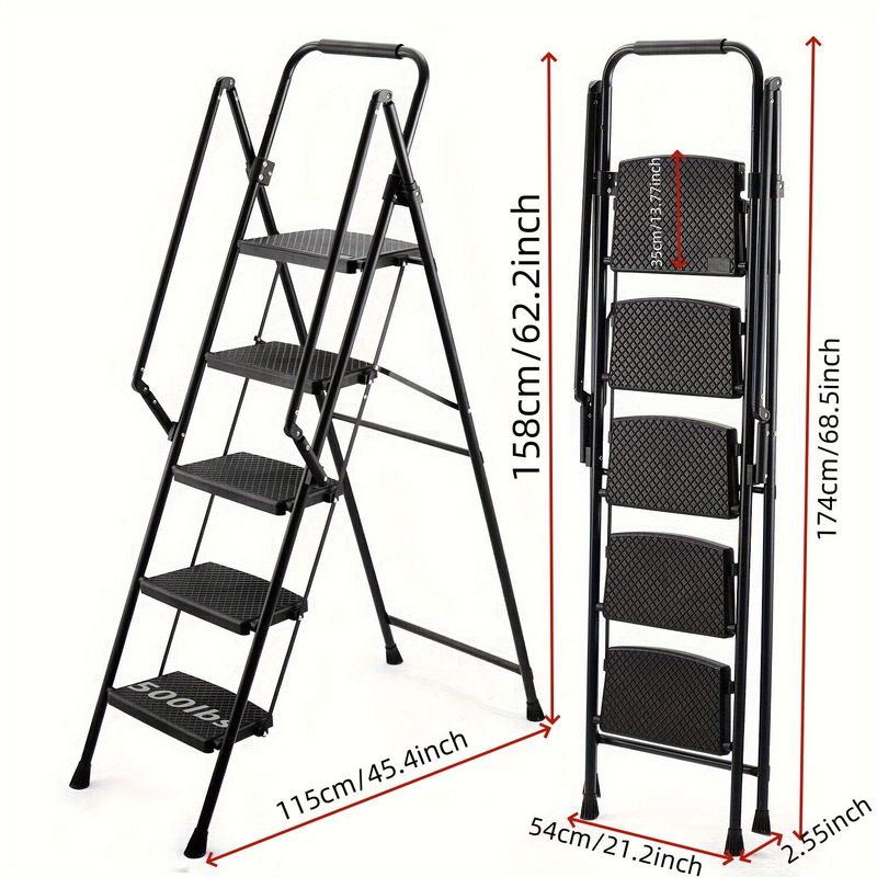 Product Name:5-step ladder, folding ladder stool, with anti slip wide pedals, steel ladder, with safety anti slip handle, lightweight 300 pound portable steel ladder stool in black