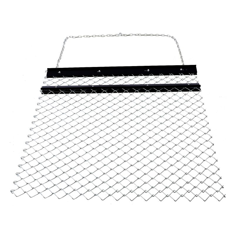 Superior Durability: Crafted with Q235 steel, known for its exceptional strength and resistance to corrosion, our chain harrow is built to withstand heavy-duty use in various environments. With dimensions of 4 x 5 ft and a coverage area of 20 sq ft, it provides efficient ground coverage for optimal results. Enhanced Efficiency and Stability: Our drag chain harrow features a heavy-duty tray designed to accommodate additional weight, such as cement, wood, or steel. By increasing the weight, you can significantly improve efficiency and stability during operation, ensuring a thorough and effective soil preparation process. Quick and Hassle-Free Setup: Equipped with a 7 ft connecting chain and hook, our chain harrow can be easily attached to a range of vehicles, such as ATVs, UTVs, and multi-function tractors. Within minutes, you can connect the harrow and start your ground preparation, making it a convenient and time-saving tool for any user. Space-Saving Storage Solution: When not in use, our drag harrow can be effortlessly rolled up and stored, thanks to its portable design. This feature allows for convenient storage in limited spaces, minimizing clutter and maximizing the efficiency of your storage area. Versatile Applications: Our drag harrow mat is designed to tackle a wide range of tasks in diverse environments. Whether you need to prepare your farm, yard, garden, lawn, arable land, roads, or construction sites, our chain harrow provides the versatility required to meet your specific needs. From soil leveling to seedbed preparation, it is a reliable tool for achieving optimal ground conditions for successful growth and development.