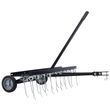 The 40" de-thatcher effectively uproots dead, matted grass swathes up to 40" in length. The 40" groomer has 20 rust-proof and replaceable heat-treated tines for maximum performance and durability. Two 7" flat free wheels provide smooth transport. Simple-to-use cantilever transport handle for easy raising and lowering of the tines. The 40" weight tray holds up to 70 lbs. for improved thatch removal.