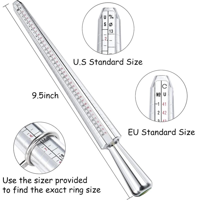 Metal UK Rings Size Measure Tool Mandrel and Finger Gauge Kit Men Women Sizes Steel A-Z UK Ring Sizer Jewellery Sizing Tools