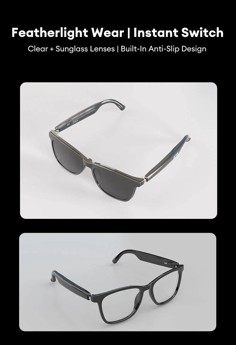 ✅[Stylish Design with Dual Lens]: This MGALL MG-C08 Smart Glasses features a classic cat-eye design that blends tech-infused style with versatility. It comes with clear and sunglass lenses, plus a built-in anti-slip structure, and weighs featherlight.