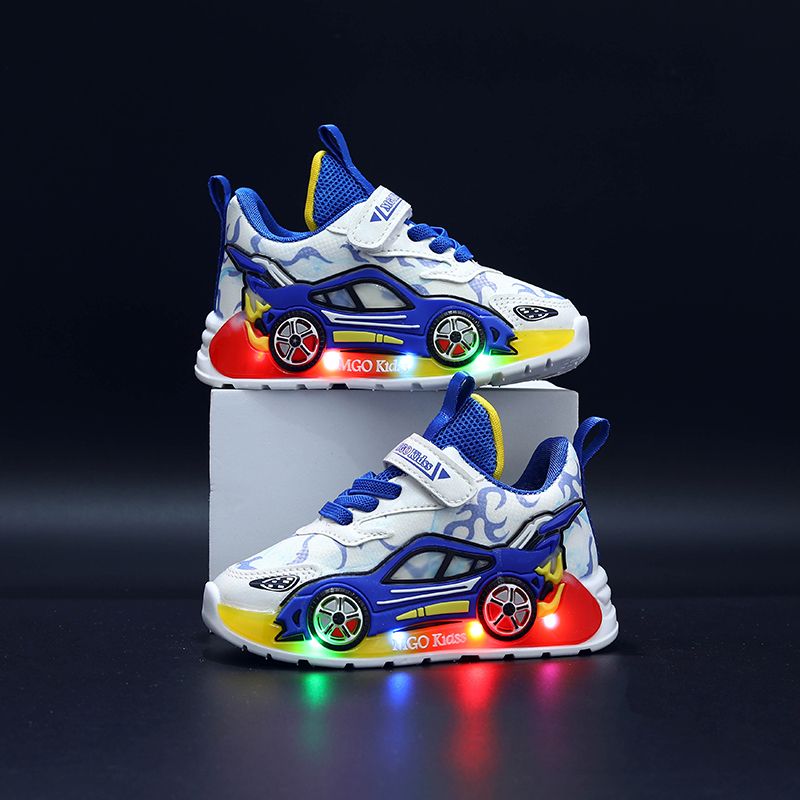 Mgo Kidss Spring and Autumn New Children's Car-Shaped Boys' Sports Shoes Cartoon Light-Up Shoes for Boys Glowing Running Shoes for Children Aged 1-3-6 Led Light-Up Shoes Thin Style Boys' Shoes Light-Up Sports Shoes Christmas/Halloween Gift