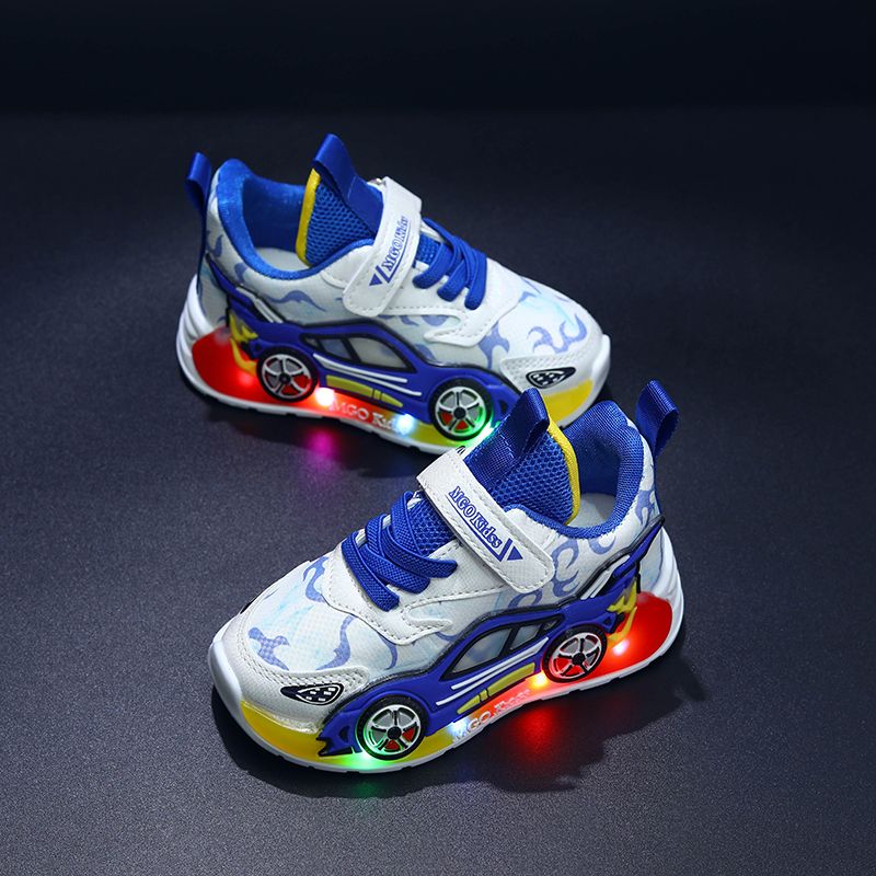 Mgo Kidss Spring and Autumn New Children's Car-Shaped Boys' Sports Shoes Cartoon Light-Up Shoes for Boys Glowing Running Shoes for Children Aged 1-3-6 Led Light-Up Shoes Thin Style Boys' Shoes Light-Up Sports Shoes Christmas/Halloween Gift