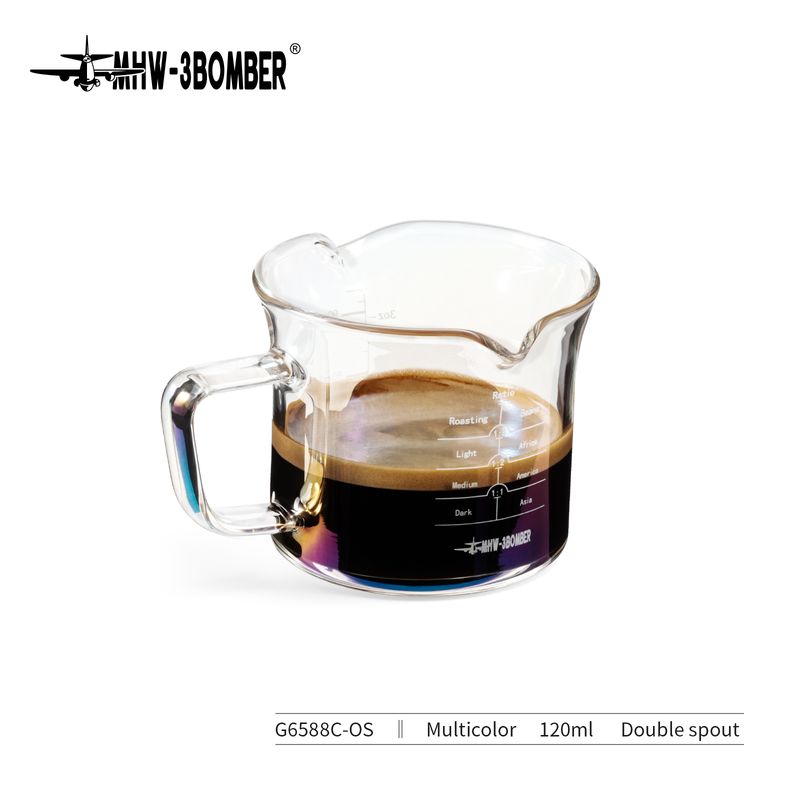 MHW-3BOMBER 120ML Glass Measuring Cup Single & Double Spout Espresso Measuring Cup with Scale Barista Tool Coffee Accessories